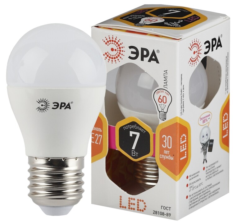 Лампа свет-я STD LED P45-7W-827-E27 E27 / E27 7Вт шар теплый белый свет аналог Б0020550