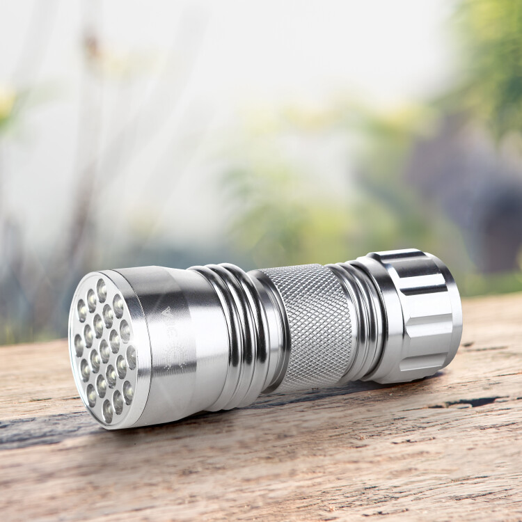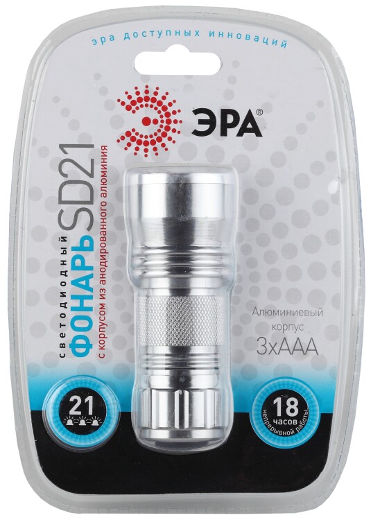 Универсальный светодиодный фонарь SD21 станет незаменимым помощником в туристическом походе, отдыхе на природе и в других ситуациях. Его компактные размеры позволяют положить даже в карман. Фонарь снабжен 21 светодиодами, обеспечивающими яркий, мощный световой луч. Он способен осветить пространство на 59 метров вперед. Корпус фонаря выполнен из прочного и легкого анодированного алюминия с множеством специальных насечек, что обеспечивает высокие антискользящие показатели товара. Фонарь работает от трех батареек типа ААА (в комплект не входят), что позволяет не зависеть от зарядных устройств. Светодиодный фонарь SD21 имеет показатель защиты от воздействия влаги и воды IP40, которого достаточно, чтобы взять его с собой на рыбалку или охоту. Компактный и мощный светодиодный фонарь будет верно служить на протяжении нескольких лет.