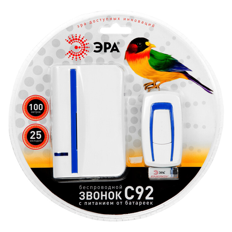 Питание динамика от 3-х батареек АА (3х1.5В) – в комплект не входят, питание кнопки - от батарейки А23 (12В) - поставляется в комплекте.