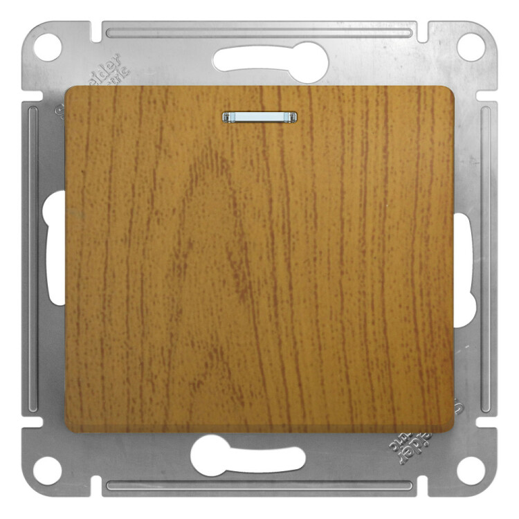 Механизм Systeme Electric (ранее Schneider Electric) серии Glossa (цвет дерево дуб) выключателя 1-клавишного с подсветкой подходит для сетей 250 В, на ток 10 А. Благодаря современной светодиодной подсветке зеленого цвета изделие легко найти в темноте. Выполнен из материала PС+ASA, стойкого к УФ-излучению и появлению царапин. Эргономичные клеммы расположены в два ряда: сверху и снизу.