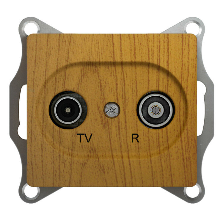 Механизм Schneider Electric Glossa (цвет дерево дуб) розетки TV-R оконечной 1DB предназначен для подключения бытовой теле-, видео- и радиоаппаратуры к антенному кабелю при внутренней установке в жилых, общественных и промышленных помещениях.