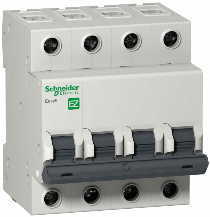Автоматический выключатель серии Easy9 Schneider Electric, 4-полюсный, номинальный ток 63 А, характеристика С, Icn = 4.5 кА.