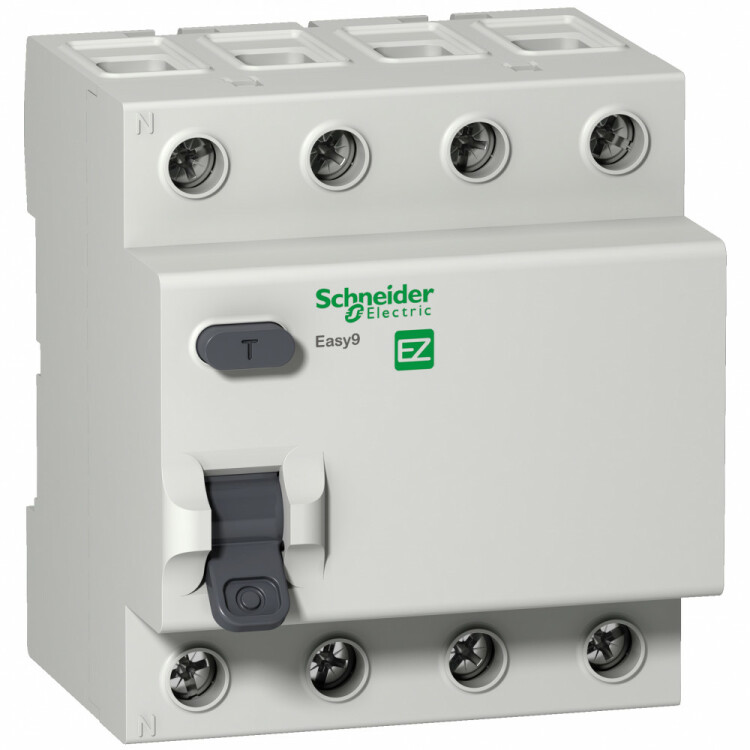 Выключатель дифференциального тока (ВДТ) или устройство защитного отключения (УЗО) серии Easy9 Schneider Electric, 4-полюсный, номинальный ток 25А, ток утечки 30 мА, тип АС, ширина 4х18 мм.