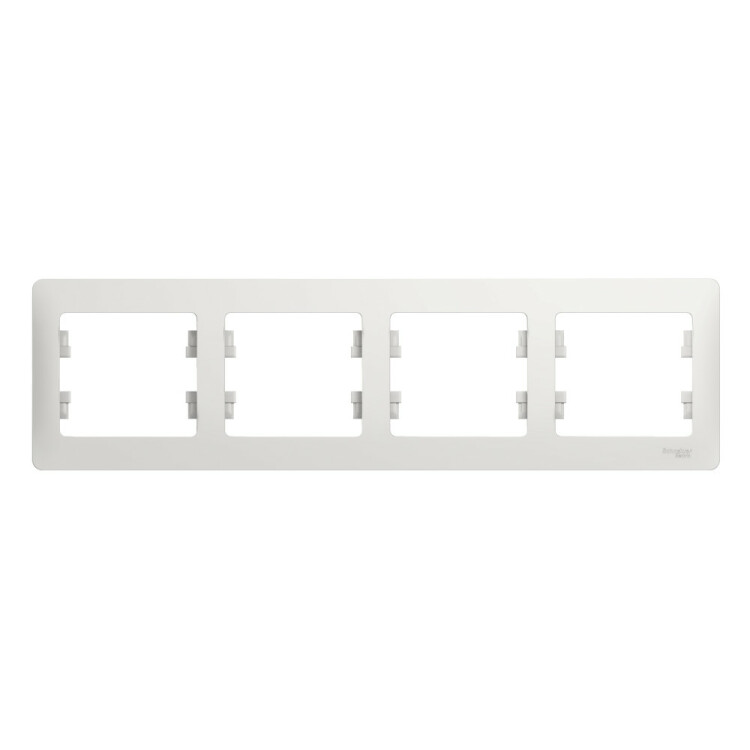 Рамка Systeme Electric (ранее Schneider Electric) серии Glossa (цвет белый) четырёхместная. Устанавливается в горизонтальном положении. Выполнена из материала PС+ASA, стойкого к УФ-излучению и появлению царапин. Позволяет гармонично вписать электроустановочное изделие в интерьер помещения. (ранее Schneider Electric ЭУИ UNICA, ЭУИ UNICA NEW MGU2.008.18, NU200818)