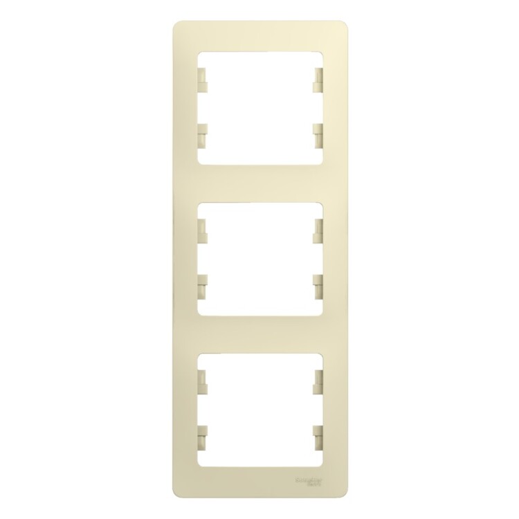 Рамка Systeme Electric (ранее Schneider Electric) серии Glossa (цвет бежевый) трёхместная. Устанавливается в вертикальном положении. Выполнена из материала PС+ASA, стойкого к УФ-излучению и появлению царапин. Позволяет гармонично вписать электроустановочное изделие в интерьер помещения.