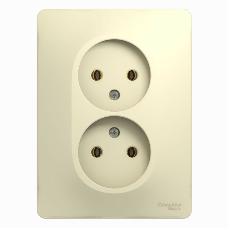 Розетка двойная Systeme Electric (ранее Schneider Electric) серии Glossa (в сборе, цвет бежевый) без заземления и без шторок подходит для сетей 250 В, на ток 16 А. Выполнен из материала PС+ASA, стойкого к УФ-излучению и появлению царапин. Эргономичные клеммы розеток расположены в один ряд. Двойная розетка позволяет подключить два устройства в одном месте.