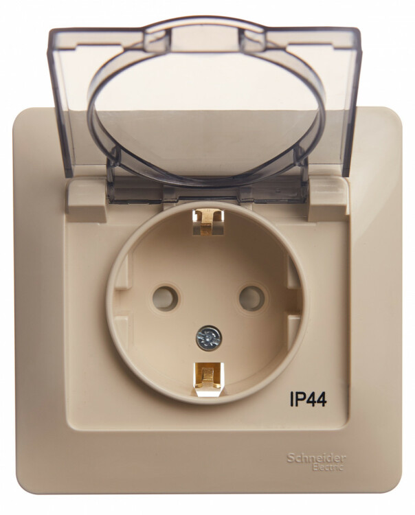 Розетка Systeme Electric (ранее Schneider Electric) серии Glossa (в сборе, цвет бежевый) одинарная с заземлением, шторками и крышкой подходит для сетей 250 В, на ток 16 А. Изделие со степенью защиты IP44 обеспечит безопасность использования в ванной и на кухне. Заземляющий контакт обеспечивает дополнительную защиту от удара электрическим током. При наличии заземления электрический потенциал уходит в землю, защищая человека. Выполнен из материала PС+ASA, стойкого к УФ-излучению и появлению царапин.