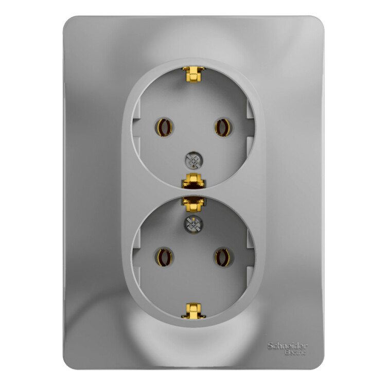 GLOSSA РОЗЕТКА двойная с заземлением, 16А, в сборе, АЛЮМИНИЙ