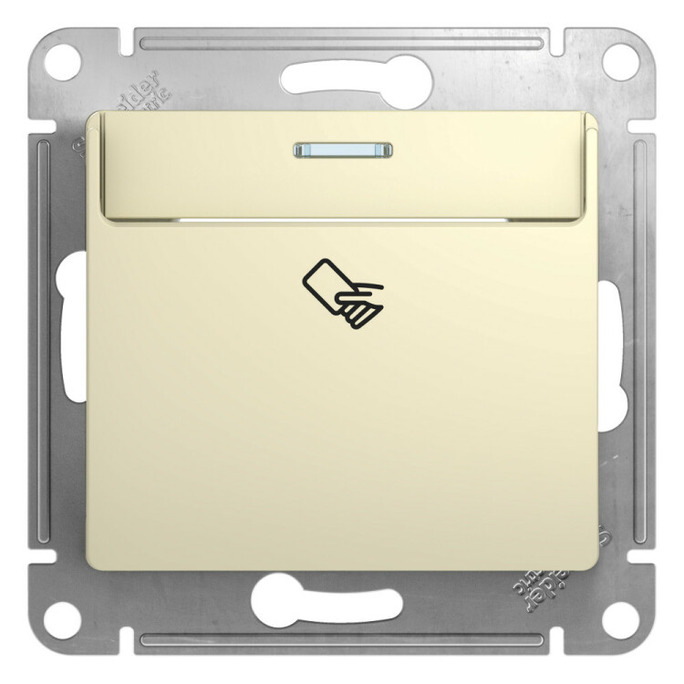Механизм Systeme Electric (ранее Schneider Electric) серии Glossa (цвет бежевый) выключателя карточного подходит для сетей 250 В, на ток 10 А. Идеально подходит для гостиниц и отелей. Выполнен из материала PС+ASA, стойкого к УФ-излучению и появлению царапин.