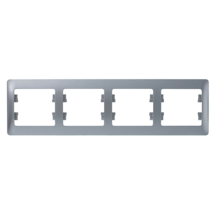 Рамка Systeme Electric (ранее Schneider Electric) серии Glossa (цвет алюминий) четырёхместная. Устанавливается в горизонтальном положении. Выполнена из материала PС+ASA, стойкого к УФ-излучению и появлению царапин. Позволяет гармонично вписать электроустановочное изделие в интерьер помещения. (ранее Schneider Electric ЭУИ UNICA NEW NU200830)
