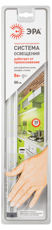 Светодиодный модуль с управлением от датчика прикосновения. Мощность 5Вт. Срок службы 30000 часов. Напряжение питания 12В DC. Цветовая температура 4000K. Комплектация: светильник, источник питания, крепежные клипсы, двусторонний скотч.