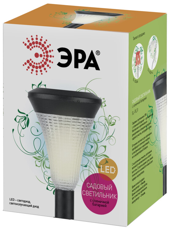 SL-PL31 ЭРА Садовый светильник на солнечной батарее, пластик, черный, 31 см (48/864) (кр. 1шт)