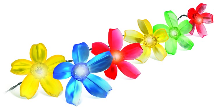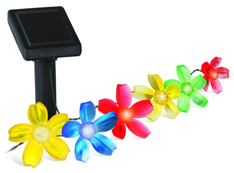 Садовая гирлянда из 10 разноцветных цветочков, длина 4 метра.