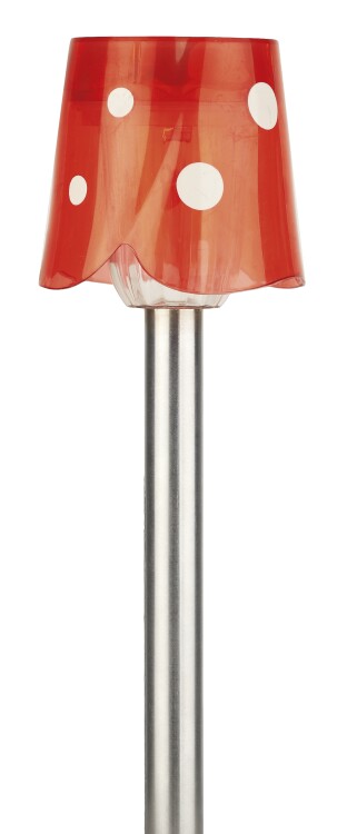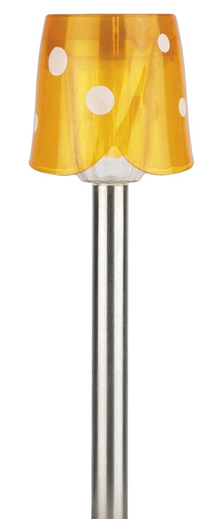 Светильник классической формы, стальная стойка и цветной пластиковый плафон. Три варианта цвета плафона: красный, оранжевый или синий.