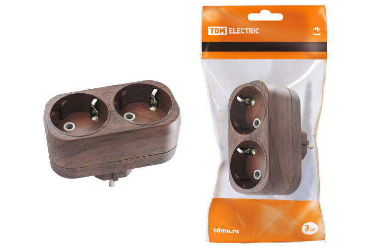 Блок на 2 гнезда 2П+З плоский 16А 250B "Эко" (бук) TDM (кр.10шт)