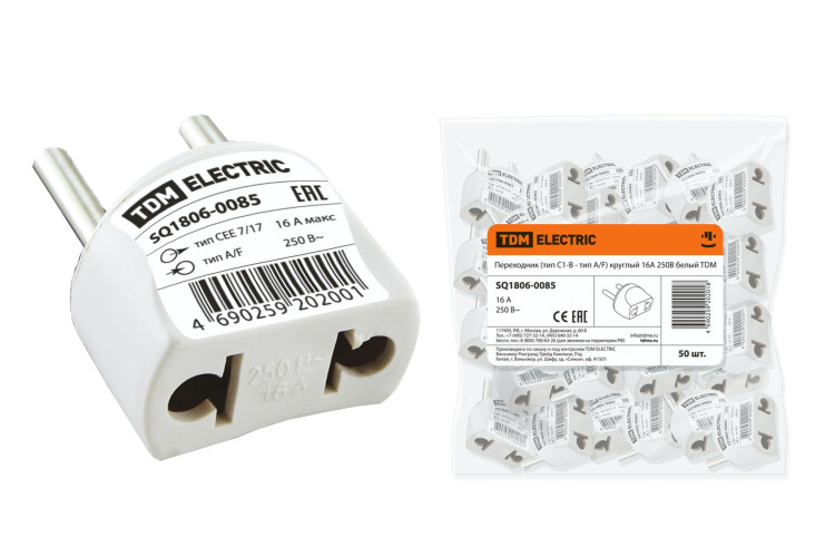 Переходник (тип С1-В - тип A/F) круглый 16A 250В белый TDM (кр.50шт)