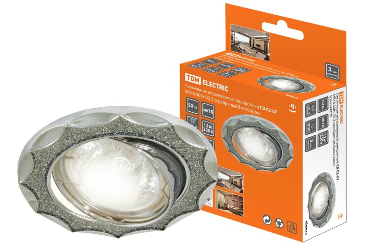 Светильник встраиваемый поворотный СВ 02-07 MR16 50Вт G5.3 серебряный блеск/хром TDM (кр.10шт)