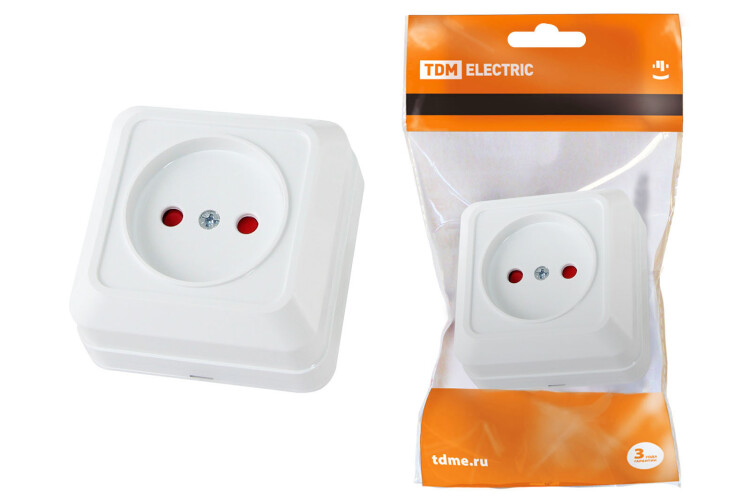 Розетка 2П открытой установки с з/ш IP20 10А, белый "Ладога" TDM (кр.10шт)