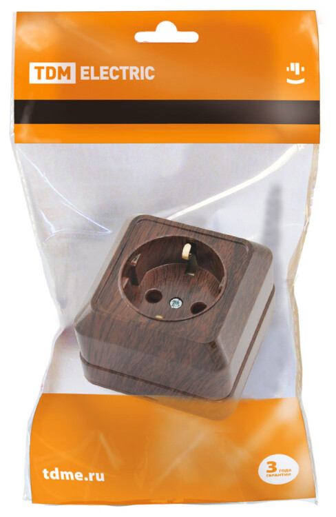 Розетка 2П+З открытой установки IP20 16А, бук "Ладога" TDM (кр.10шт)