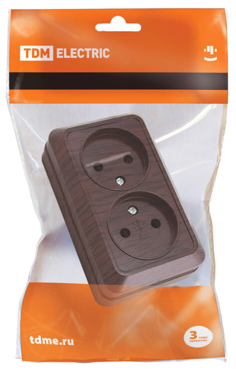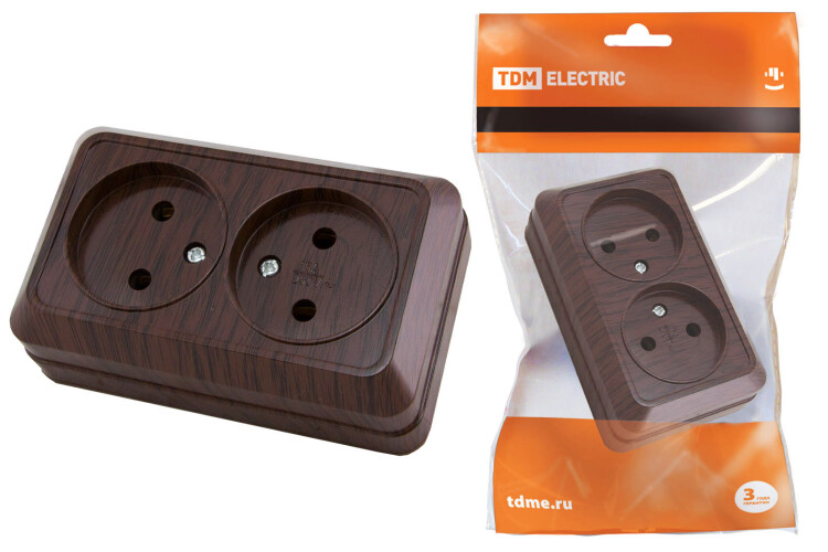 Розетка двойная 2П открытой установки IP20 10А, бук "Ладога" TDM (кр.10шт)