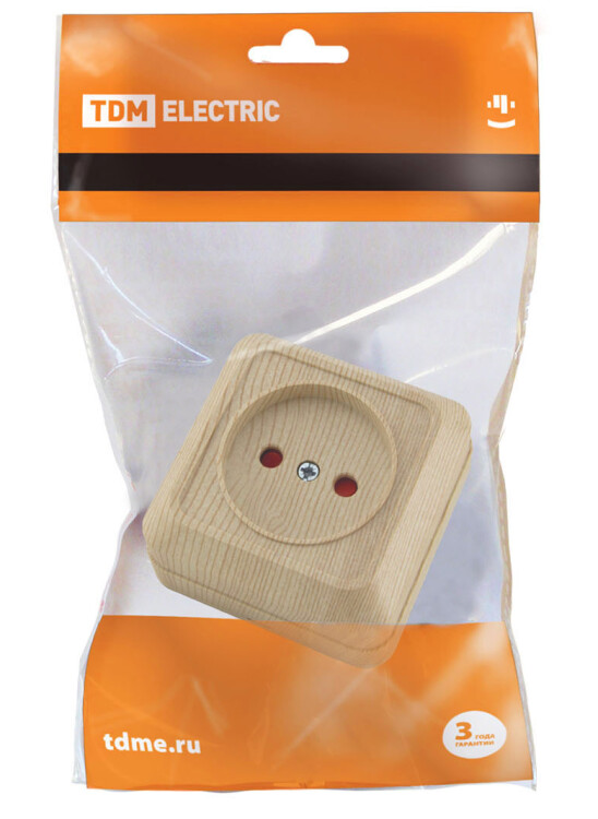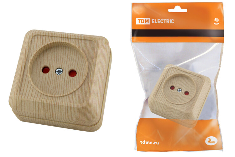 Розетка 2П открытой установки с з/ш IP20 10А, сосна "Ладога" TDM (кр.10шт)