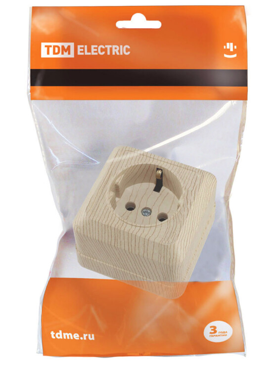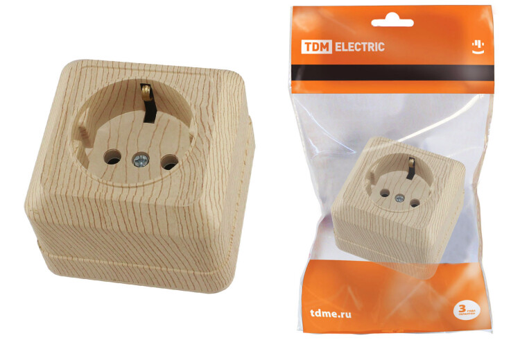 Розетка 2П+З открытой установки IP20 16А, сосна "Ладога" TDM (кр.10шт)
