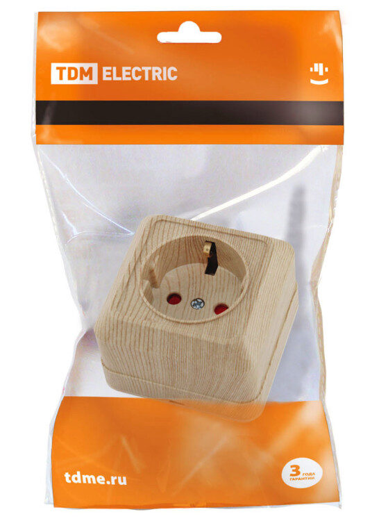 Розетка 2П+З открытой установки с з/ш IP20 16А, сосна "Ладога" TDM (кр.10шт)