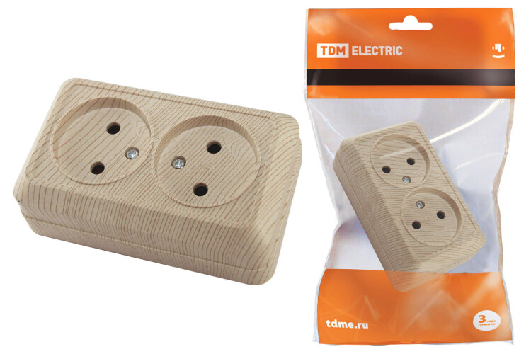 Розетка двойная 2П открытой установки IP20 10А, сосна "Ладога" TDM (кр.10шт)