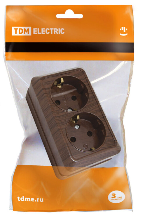 Розетка двойная 2П+З открытой установки IP20 16А, бук "Ладога" TDM (кр.10шт)
