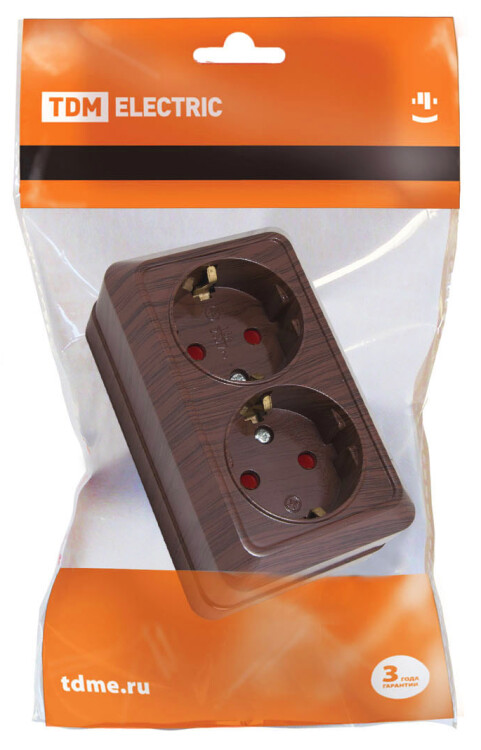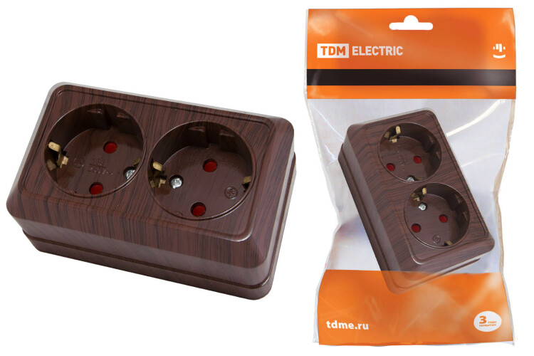 Розетка двойная 2П+З открытой установки с з/ш IP20 16А, бук "Ладога" TDM (кр.10шт)