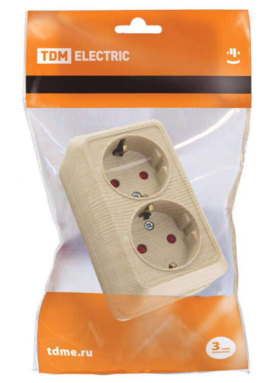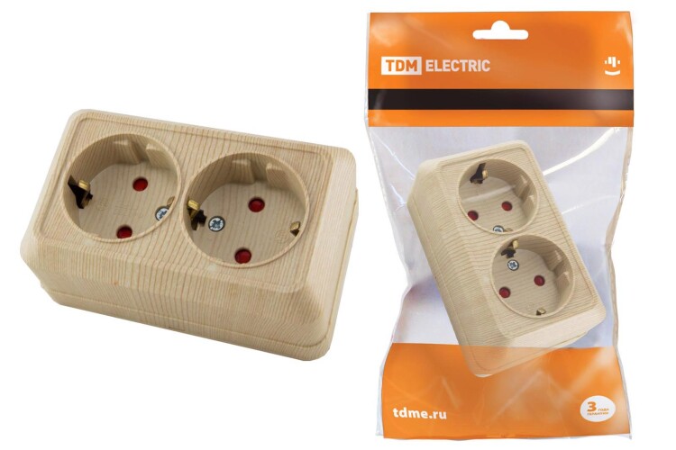 Розетка двойная 2П+З открытой установки с з/ш IP20 16А, сосна "Ладога" TDM (кр.10шт)