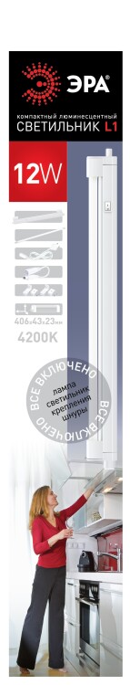 Люминесцентный светильник 12W , лампа T4 G5. В комплекте: cетевой шнур, соединительный шнур, выключатель, крепеж