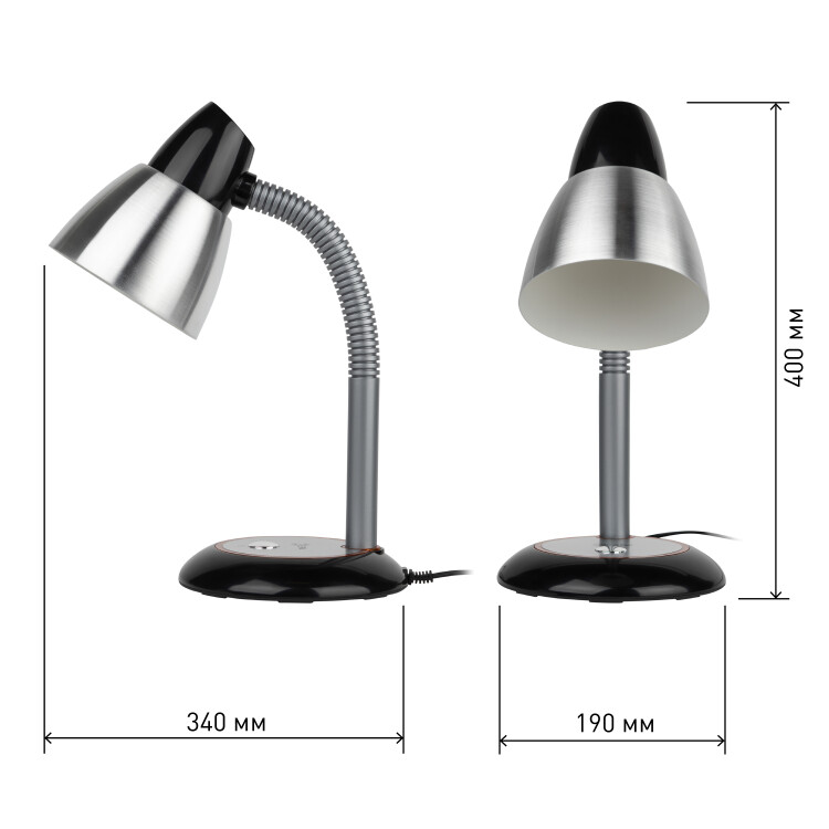 Настольный светильник ЭРА N-115-E27-40W-BK может ис пользоваться с лампой накаливания, компактной люминесцентной лампой (КЛЛ) или светодиодной (LED) лампой. У светильника классический солидный дизайн, устойчивое металлическое основание. А также металлический плафон большого диаметра для комфортного рассеивания света. Направление света регулируется наклоном и поворотом плафона в любом направлении.
