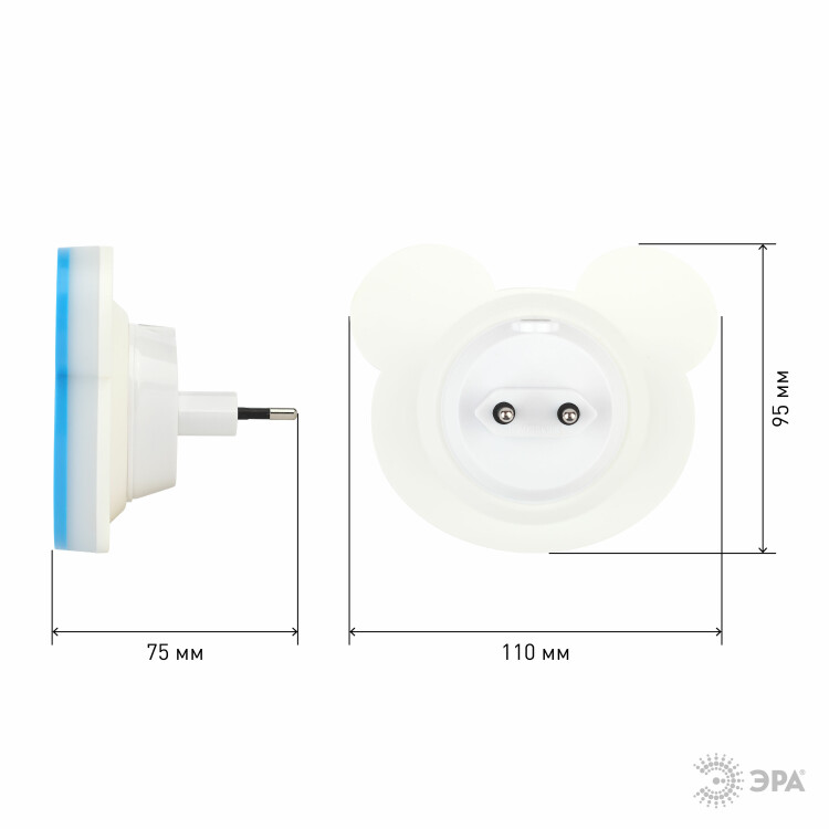Ночник ЭРА в розетку со светодиодами (LED) в качестве источников света и встроенным датчиком освещенности. Имеет съемную бикомпонентную насадку в виде цветной фигурки "Медведь". Можно использовать без насадки, так получается ночник в нейтральном дизайне (белый корпус). Среди множества вариантов ночников миниатюрные модели, вставляющиеся в розетку - одни из самых удобных. Максимально удобное устройство. Этот ночник включается автоматически, как только в помещении становится темно. И выключается, когда наступает утро или в комнате включают основное освещение. Просто воткните компактный ЭРА NN-625-LS-BU в розетку - все остальное он будет ответственно выполнять сам. Светодиодные ночники ЭРА отличаются мизерным энергопотреблением, которое будет незаметно в общем счете за электроэнергию. Современная LED-технология исключает пульсации света, освещение ровное и приглушенное - то, что нужно для комфортного сна или ночной подсветки. Упаковка позволяет проверить работу ночника не доставая его из блистера, нужно только включить его в розетку и прикрыть датчик освещенности рукой.