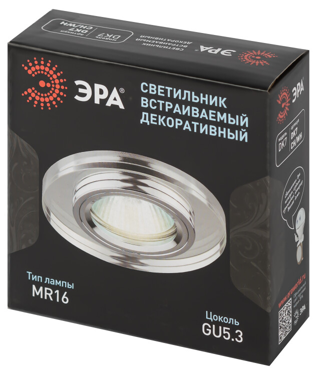 Светильник встраиваемый DK7 CH/WH - замечательное решение для любой комнаты в вашем доме. Точечные светильники можно использовать как в качестве главного освещения, так и для создания акцентов в определенных зонах комнаты. Благодаря скрытой части корпуса светильники можно встраивать не только в потолок, но и в стены, создавая разный стиль помещений. Светильник ЭРА с приятным дизайном подойдет для комнат с разным интерьером: от лофта до модерна, классицизма или минимализма. При помощи точечных светильников можно освещать только те участки помещения, которыми вы пользуетесь в данный момент, не затрачивая лишнюю элеткроэнергию. Максимальная мощность лампы составляет 50 Вт. Корпус встраиваемого светильника изготовлен из алюминия, что делает его особенно удобным и надежным в использовании. Диаметр отверстия, требуемого для установки светильника составляет 65 миллиметров, а диаметр самого светильника – 90 миллиметров. Цоколь под лампу GU5.3 входит в комплект. Купив точечный светильник бренда ЭРА, вы останетесь довольны и сможете создать приятную атмосферу и уют в Вашем доме. Внимание: лампа не входит в комплектацию.