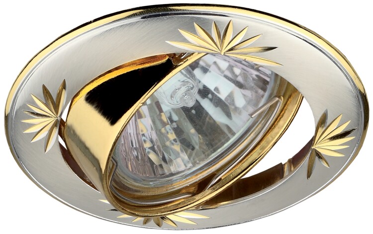 KL3A SS/G Светильник ЭРА литой круг. пов. с гравировкой MR16,12V/220V, 50W сатин серебро/золото (100 (кр. 1шт)