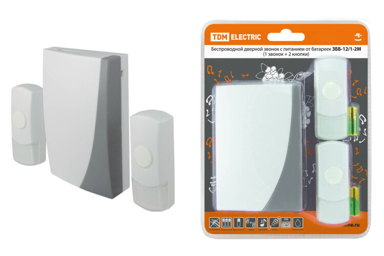 Звонок ЗББ-12/1-2М (беспр., бат., 2 кнопки) TDM (кр.1шт)