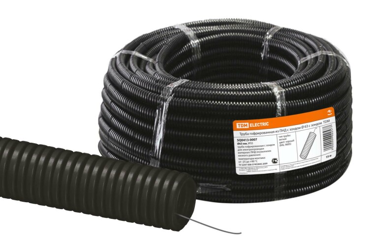 Материалы:Полиэтилен низкого давления (ПНД)Протяжка стальная проволока класса 2 диаметром 0,9 мм Преимущества:Материал - композиция ПНД- позволяет проводить электромонтажные работы в широком диапазоне температур от -45С до +90С без потерь механических и изоляционных свойств.Трубы из ПНД имеют высокие прочностные характеристики, которые позволяют использовать их при прокладке как в бетоне, так и в грунте. При этом гофротруба из ПНД обладает высокой гибкостью и пластичностью.Наличие зонда обеспечивает удобство протяжки кабеля и провода.Назначение:Предназначены для прокладки кабеля при монтаже проводки скрытым/открытым способом в стенах (по стенам), потолках, в полах и т.д. 0: Материалы:Полиэтилен низкого давления (ПНД)Протяжка стальная проволока класса 2 диаметром 0,9 мм.