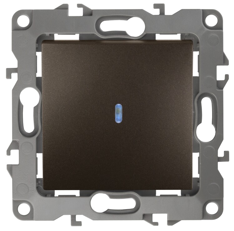 Выключатель 1-клавишный с подсветкой серии Эра 12 скрыт.установки механизм цвет бронза 12-1102-13. Номинальные характеристики 10А 250В . Сделан из поликарбоната, оснащёно автоматическими клеммами для быстрй и надёжной фиксации жил кабеля в механиме. Парные клеммы обеспечивают соединение шлейфом. Монтаж в подрозетник производится и на лапки, и на винты. Рамки приобретаются отдельно. Рамки Эра 12: 1 пост 12-5001-хх, 2 поста 12-5002-хх, 3 поста 12-5003-хх, 4 поста 12-5004-хх, 5 постов 12-5005-хх. Рамки Эра 12 Сатин: 1 пост 12-5101-хх, 2 поста 12-5102-хх, 3 поста 12-5103-хх, 4 поста 12-5104-хх, 5 постов - 12-5105-хх (хх - код цвета: 01-белый, 02-слоновая кость, 03-алюминий, 04-шампань, 05-антрацит, 06-чёрный, 07-ольха(белёный дуб-сатин), 08-вишня, 09-дуб, 10-венге, 11-сосна, 21-жёлтый, 22-оранжевый, 23-красный, 24-охра, 25-бордо, 26-лайм, 27-зелёный, 28-голубой, 29-синий).