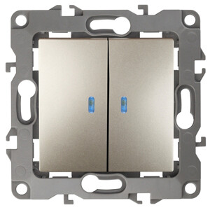 12-1105-04 ЭРА Выключатель двойной с подсветкой, 10АХ-250В, IP20, Эра12, шампань (10/100/2500) (кр. 1шт)