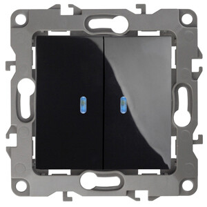Выключатель двойной с подсветкой, 10АХ-250В, Эр а12, чёрный