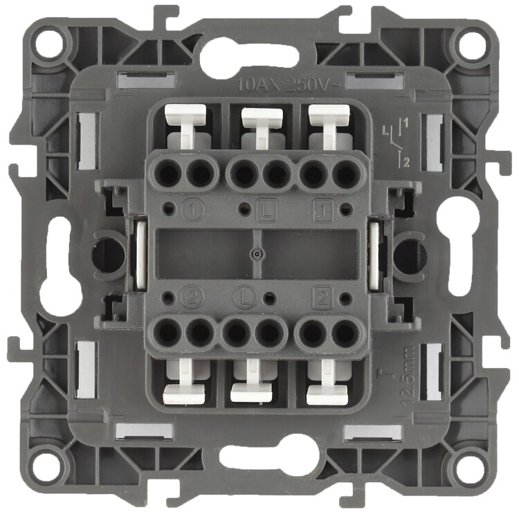 Двойной переключатель "ЭРА" выполнен из проч ного пластика, контакты бронзовые. Используется в осветительной технике в том случае, если необходимо включать одну люстру (другой светильник) с нескольких мест (например: из кухни, коридора, гостиной при больших проходных комнатах). Изделие просто в установке, надежно в эксплуатации. Переключатель имеет специальные фиксаторы, которые не дают ему смещаться как при монтаже, так и в процессе эксплуатации. Автоматические зажимы кабеля обеспечивают быстрый и надежный монтаж изделия к электросети без отвертки и не требуют обслуживания в отличие от винтовых зажимов.