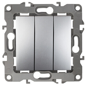 Выключатель 3-клавишный серии Эра 12 скрытой установки механизм цвет алюминий 12-1107-03. Номинальные характеристики 10А 250В . Сделан из поликарбоната, оснащён винтовыми уникальными клеммами ЭКСПЕРТ для надёжной фиксации жил кабеля в механиме. Парные клеммы обеспечивают соединение шлейфом. Монтаж в подрозетник производится и на лапки, и на винты. Рамки приобретаются отдельно. Рамки Эра 12: 1 пост 12-5001-хх, 2 поста 12-5002-хх, 3 поста 12-5003-хх, 4 поста 12-5004-хх, 5 постов 12-5005-хх. Рамки Эра 12 Сатин: 1 пост 12-5101-хх, 2 поста 12-5102-хх, 3 поста 12-5103-хх, 4 поста 12-5104-хх, 5 постов - 12-5105-хх (хх - код цвета: 01-белый, 02-слоновая кость, 03-алюминий, 04-шампань, 05-антрацит, 06-чёрный, 07-ольха(белёный дуб-сатин), 08-вишня, 09-дуб, 10-венге, 11-сосна, 21-жёлтый, 22-оранжевый, 23-красный, 24-охра, 25-бордо, 26-лайм, 27-зелёный, 28-голубой, 29-синий).