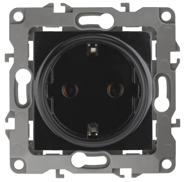 Розетка с заземлением со шторками серии Эра 12 скрытой установки механизм цвет чёрный 12-2102-06. Номинальные хар-ки 16А 250В . Сделана из поликарбоната, оснащёна автоматическими клеммами для быстрый и надёжной фиксации жил кабеля в мех аниме. Парные клеммы обеспечивают соединение шлейфом. Монтаж в подрозетник производится и на лапки, и на винты. Рамки приобретаются отдельно. Рамки Эра 12: 1 пост 12-5001-хх, 2 поста 12-5002-хх, 3 поста 12-5003-хх, 4 поста 12-5004-хх, 5 постов 12-5005-хх. Рамки Эра 12 Сатин: 1 пост 12-5101-хх, 2 поста 12-5102-хх, 3 поста 12-5103-хх, 4 поста 12-5104-хх, 5 постов - 12-5105-хх (хх - код цвета: 01-белый, 02-слоновая кость, 03-алюминий, 04-шампань, 05-антрацит, 06-чёрный, 07-ольха(белёный дуб-сатин), 08-вишня, 09-дуб, 10-венге, 11-сосна, 21-жёлтый, 22-оранжевый, 23-красный, 24-охра, 25-бордо, 26-лайм, 27-зелёный, 28-голубой, 29-синий).