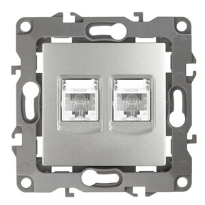 12-3106-03 ЭРА Розетка телефонная двойная 2XRJ11, Эра12, алюминий (10/100) (кр.10шт) | Б0014719