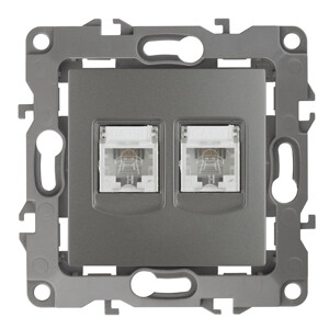 Розетка телефонная двойная 2XRJ11, Эра12, графит
