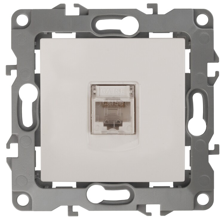 Розетка интернет RJ45 серии Эра 12 скрытой установки механизм цвет слоновая кость 12-3107-02. Сделана из поликарбоната. Монтаж в подрозетник производится и на лапки, и на винты. Рамки приобретаются отдельно.