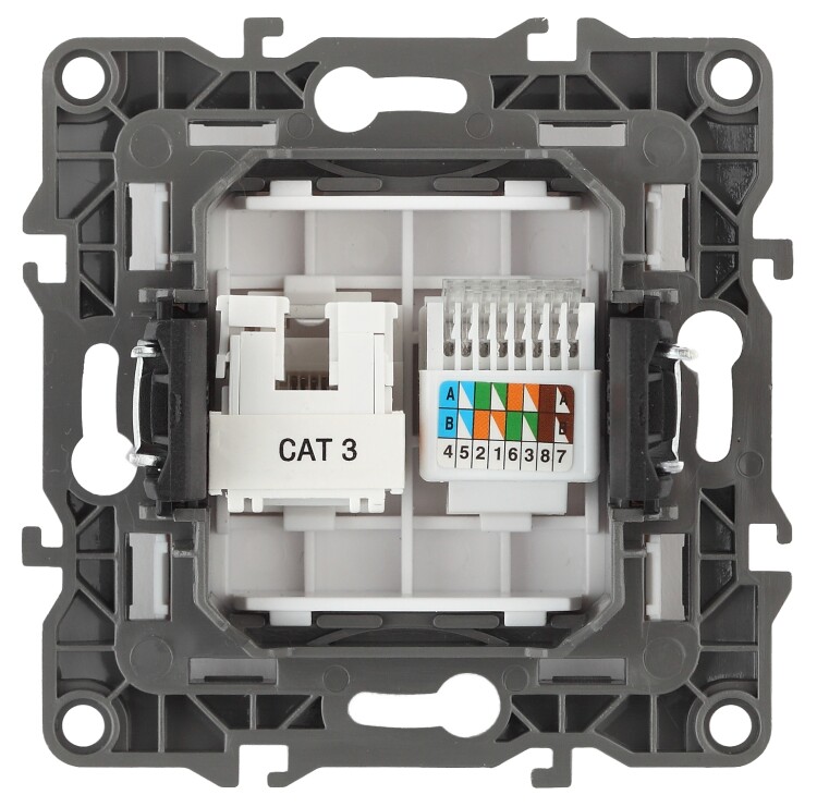 12-3109-12 ЭРА Розетка информационная+телефонная RJ45+RJ11, Эра12, графит (10/100/2500) (кр.10шт) | Б0019358