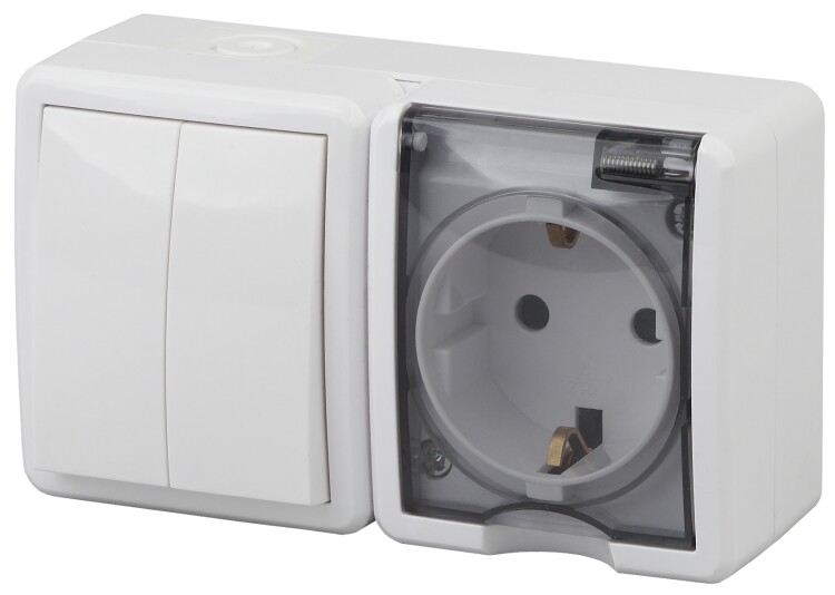 Блок розетка с выключателем влагозащищённый IP54 серии Эра Эксперт открытой установки цвет белый 11-7402-01. Номинальные характеристики 16А 250В. Устройство выполнено из качественного поликарбоната, оснащёно уникальными винтовыми клеммами ЭКСПЕРТ для максимально качественного зажима кабеля в механизме.