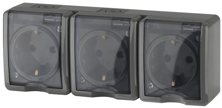 11-2406-03 ЭРА Розетка 3х2P+E IP54, шторки, 16A-250В, ОУ, серый (5/50/800) (кр. 1шт)